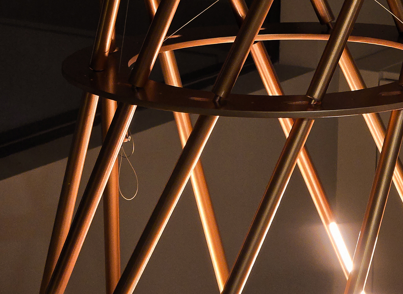 People and performers are seen as living art, interacting with architecture and becoming part of the installation. A kinetic system enhances the backdrop by revealing warm light in the shape of elegant wipes and sparkles.