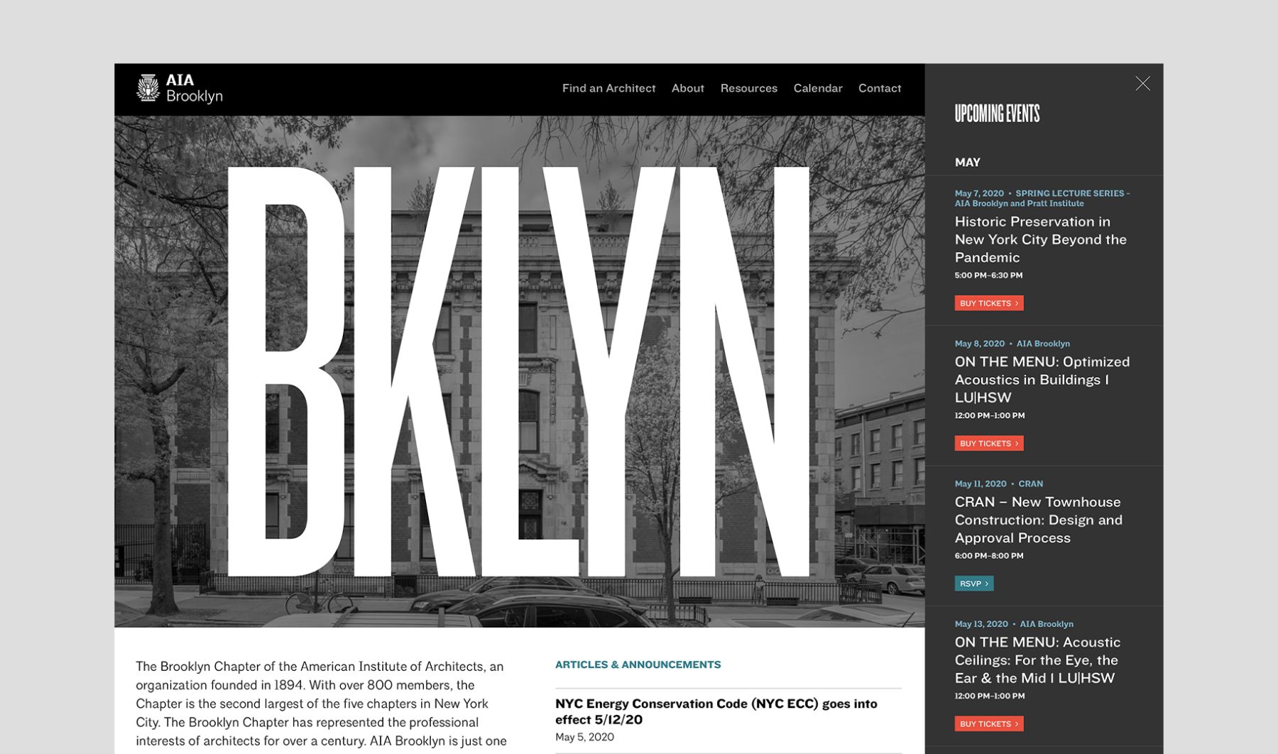 The Brooklyn Chapter of the American Institute of Architects (AIA), established in 1894, is the second-largest of the Institute’s five chapters in the New York City region. KUDOS was tasked with creating AIA Brooklyn’s website.
