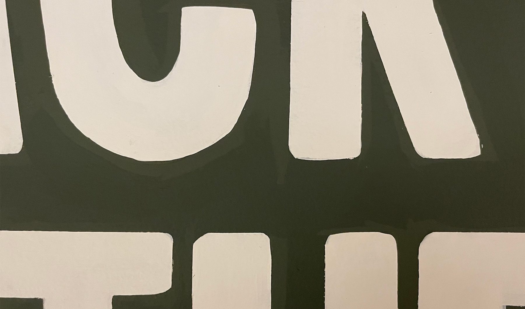Our exhibition design began outside the gallery with two oversized protest signs leaning against the wall, amplified with hand-painted lettering reminiscent of protest signs from the Civil Rights era.
