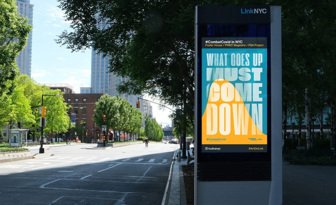 For this project, we produced uplifting poster designs around the theme of “New York Strong.” These can now be found throughout New York City on nearly 1,800 digital screens and billboards, thanks to partnerships with LinkNYC, JCDecaux, Silvercast, Pearl Media, and Times Square Arts.