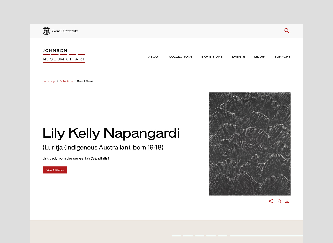 The resulting site is a transformative online platform that gives visitors unprecedented access to the Johnson’s astounding collection of 40,000 works that span six millenia and most world cultures. Beyond serving as a crucial archive, the website also acts as a dynamic educational platform, offering a variety of activities for children via the Johnson Kids portal, and an opportunity through the Community Exhibition Creator for visitors to create their own online exhibitions incorporating artworks from the museum’s collection. Through these functions, visitors are empowered to engage with the collection on their own terms, creating an egalitarian and inclusive experience of the museum.