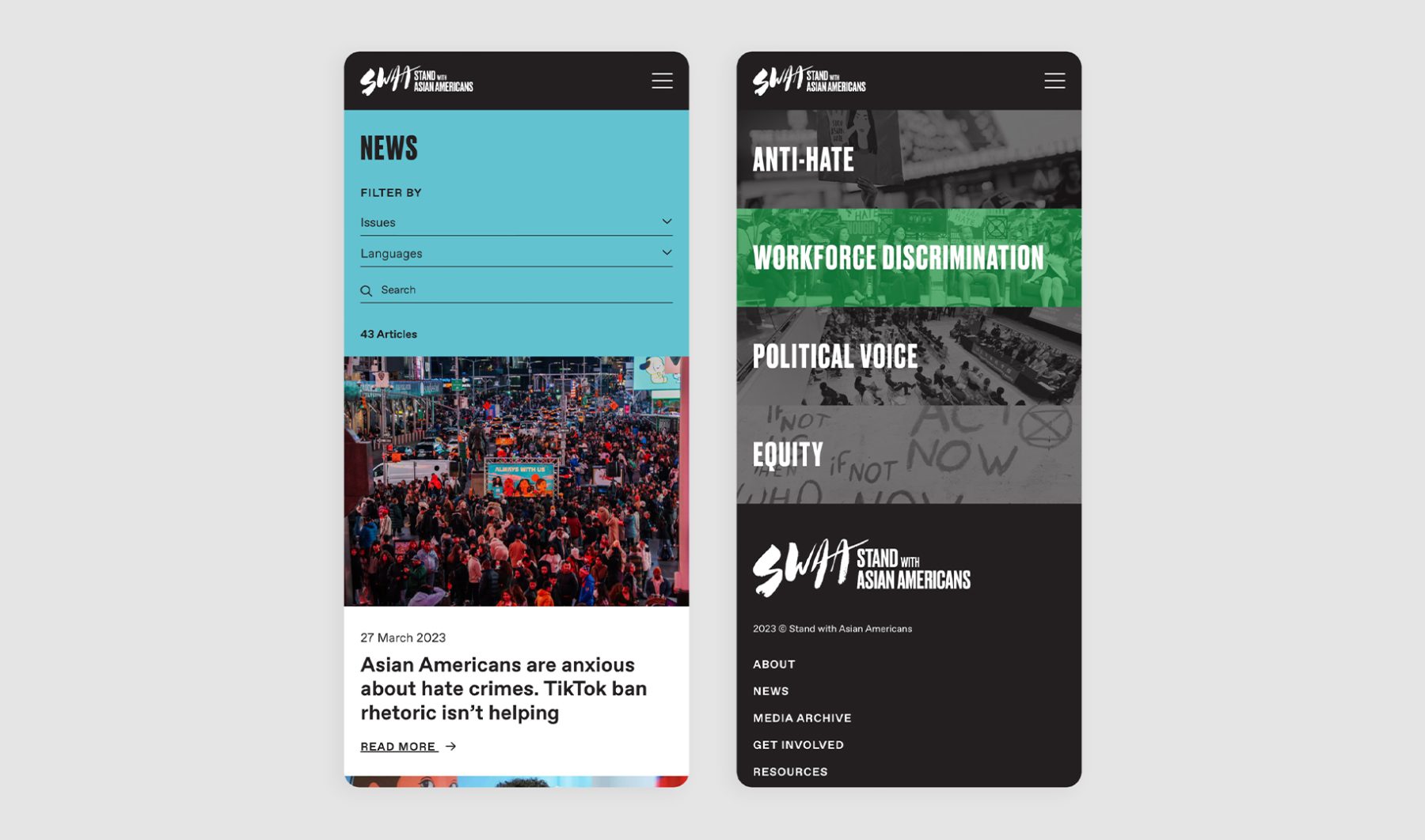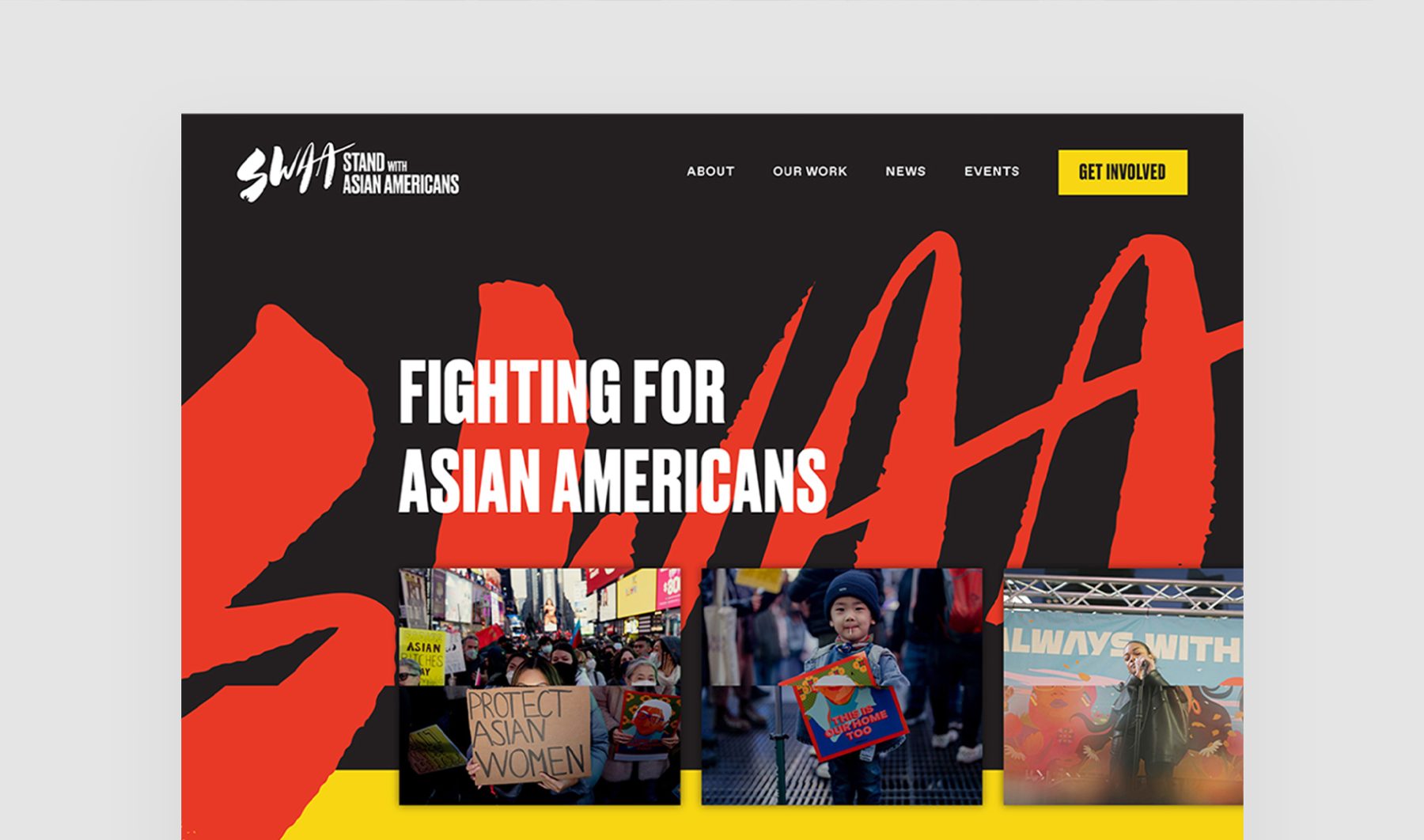 Stand with Asian Americans (SwAA) was established as the largest coalition of Asian American entrepreneurs, investors, and activists. KUDOS was tasked with developing comprehensive branding and a website for the organization.