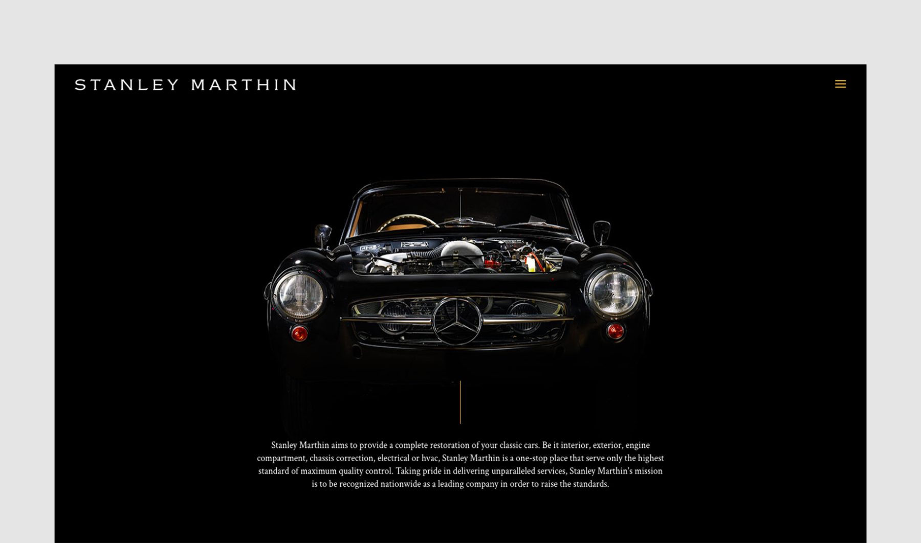 Stanley Marthin is a renowned classic-automotives restoration garage located in an extravagant two-storey garage/gallery space, specializing in meticulous restorations of classic cars through the enhancement of their interior, exterior, engine compartment, chassis, and electrical systems.