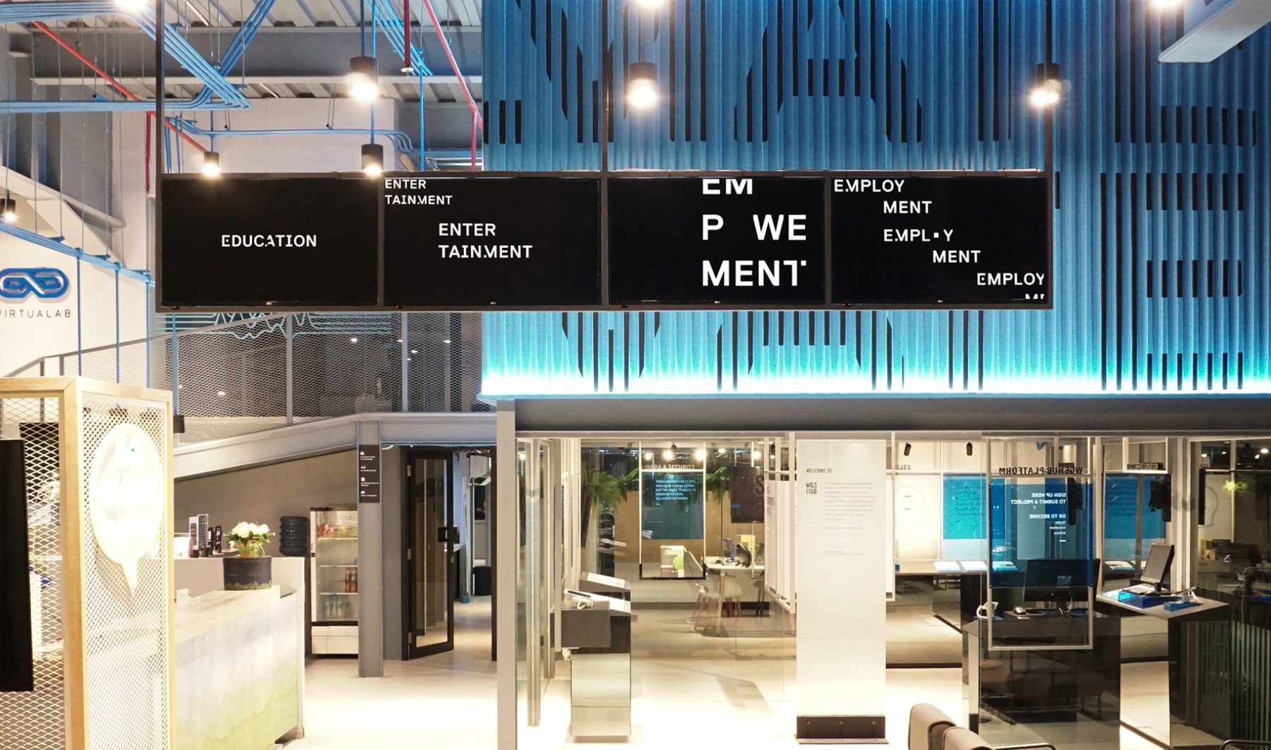 For the organization’s branding and space, we designed a typographic system that drew inspiration from the appearance of an onscreen pixel glitch. In our design, these pixel bits become a dynamic graphic element that expresses Techpolitan’s graphic identity in interactions with its logotype, signage, motion graphics, and various communications.