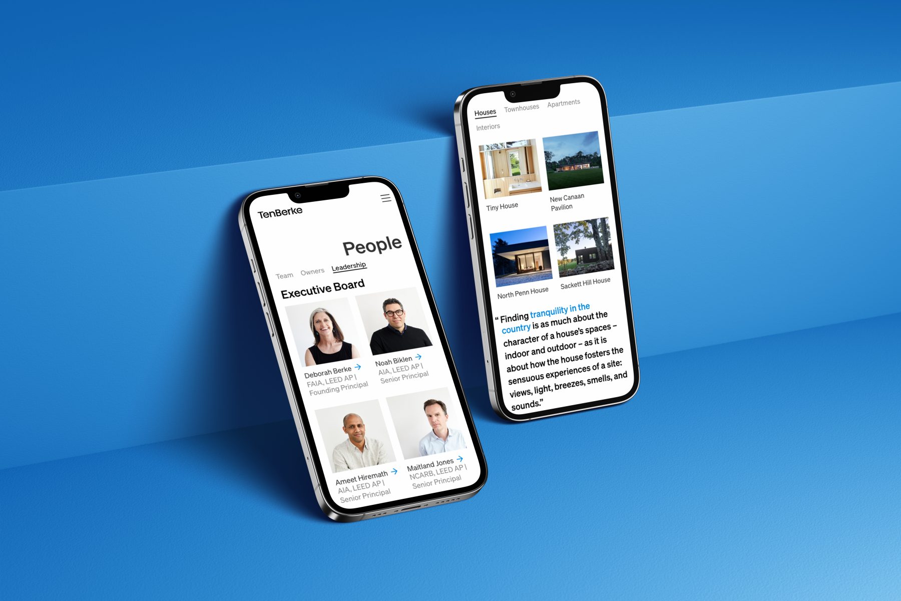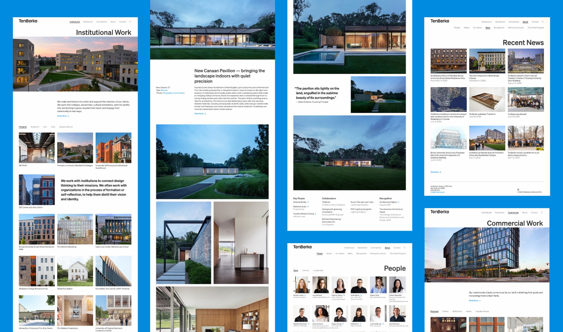 KUDOS was tasked with reimagining TenBerke’s website to speak more directly to the three types of audience groups the firm works with: Institutional, Residential, and Commercial. We designed our website with an open aesthetic, which was structured while allowing for organic, dynamic moments that reflect insights from the studio’s various partners.